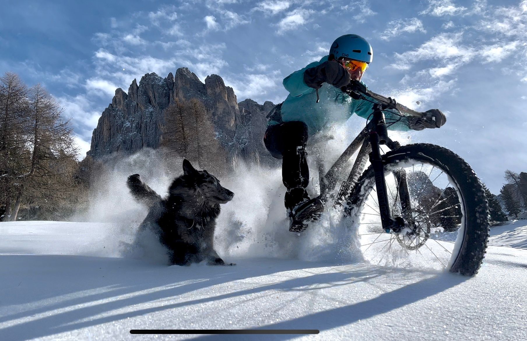 One lucky day Alberto meets Timo the dog, since then an unsurpassed companion during the long days of bikepacking in search of the most beautiful trails in the Dolomites. Timo is now enjoying the heavenly paths and has passed the baton to Mapu the dog.